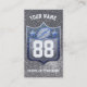 Un falso purpurina brilla detrás de un audaz número de camiseta. Actualice fácilmente el nombre del jugador de fútbol, su número y el nombre de la escuela o del equipo en la parte delantera de esta plantilla de tarjeta de visita. La parte trasera ofrece un amplio espacio para añadir toda la información de contacto necesaria. Disponible en otros colores brillantes del equipo.