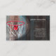 La tarjeta de visita del entrenador de baloncesto incluye una canasta de baloncesto sobre una pared de madera. Perfecto para instructores de baloncesto, entrenadores de baloncesto, entrenadores de baloncesto, temas relacionados con el baloncesto.