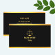 Elegante estilo moderno de oro metálico de marca y telas de fondo negro Law Business Cards. Todos los textos listos para ser personalizados.