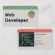 Una tarjeta de visita para todos los profesionales de la web como webmaster, desarrollador web, diseñador web, desarrollador de aplicaciones, analistas, ingeniero de redes, ingeniero de IA, científico de datos, etc. Hay un ilustracion de globo web a nivel mundial en la parte delantera y una página con algún código en la parte trasera. La parte superior parece una ventana del navegador con una barra y botones de control. ¡La información de contacto está decorada con iconos!