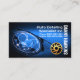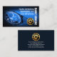 La cubierta cuenta con un diseño de faros de un coche deportivo azul con una suave viñeta. Su prestigioso nombre se mantiene verticalmente en el lado derecho de la tarjeta. Junto a su nombre se encuentra el nombre de la empresa, los datos de contacto y el logotipo de la llanta de neumáticos dorados que puede utilizar. Al dorso, en una cubierta azul oscuro, en la parte superior está el logotipo dorado seguido de tu prestigioso nombre, detalles de contacto y una opción de subtítulo de eslogan que puedes cambiar. Un diseño adecuado para cualquier negocio automotor. #autoworks #autorepairs #autopaint #mecánic #enginerepair #autodetallismo #revisión de ingeniería #autoservice #auto #garage #zazzlemade