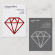 Una plantilla de tarjeta de visita con una joya atractiva o un motivo de diamante en la parte delantera. Nombre de la empresa, tipo de negocio y dirección en la parte delantera con nombre, cargo, telefonía, web y direcciones de correo electrónico en la parte posterior, con un diseño similar en un fondo gris con un motivo de diamante en un gris más claro. Esta tarjeta también se puede personalizar más.