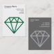 Una plantilla de tarjeta de visita con una joya atractiva o un motivo de diamante en la parte delantera. Nombre de la empresa, tipo de negocio y dirección en la parte delantera con nombre, cargo, telefonía, web y direcciones de correo electrónico en la parte posterior, con un diseño similar en un fondo gris con un motivo de diamante en un gris más claro. Esta tarjeta también se puede personalizar más.