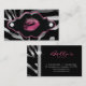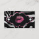 Tarjeta de visita de la joyería de la belleza del balneario del salón del artista de maquillaje con los labios y el fondo moderno del estampado de animales de la cebra.