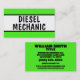 Tarjeta De Visita Diesel Mechanic Neon Green