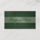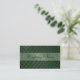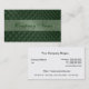 Un diseño de tarjetas metálicas verdes. Una banda verde texturada cruza el centro de la tarjeta para resaltar el nombre de la compañía. El resto de la información pertinente se encuentra en la parte posterior de esta tarjeta de visita para un elegante y limpio aspecto. Todos los campos de texto son editables para una personalización sencilla.