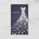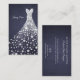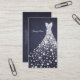 Elegante tarjeta de presentación femenina, sencilla y elegante, con un hermoso vestido de boda de diamantes blancos estilizados sobre un fondo de pizarra azul vintage de medianoche con un sencillo guión de caligrafía de moda. ++++++++++++++ Brinda un elegante y elegante aspecto, apto para los planificadores de bodas, diseñadores de moda o propietarios de tiendas de bodas.
