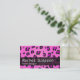 Un diseño de impresión de leopardo de color rosa. Utilice la parte delantera para el nombre de su empresa y la parte posterior para la línea de su etiqueta y la información de contacto. Esta tarjeta tiene muchos usos como tarjeta de visita de aspecto moderno. Ideal para un diseñador que busca una brillante y contemporánea tarjeta de visita atrayente.