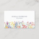 Un diseño de tarjeta de presentación moderno y elegante con un fondo blanco clásico y, en la parte inferior, hay una frontera colorida de flores silvestres de primavera en acuarela. La tipografía moderna y gris se puede personalizar fácilmente con su nombre y detalles comerciales.