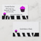 Destacar con estos audaces diseños de quequitos. Pasteles morados con rociadores. Un borde de un patrón de piel de cebra acentúa el fondo. Personalizar con toda la información que desee.