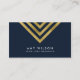 Tarjeta De Visita Diseño geométrico de Moda azul oscuro Faux Gold
