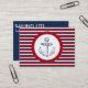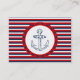 Diseño náutico con decoración de ancla dibujada a mano sobre fondo rayado azul, rojo y blanco