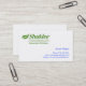 Una tarjeta de visita profesional agradable para los representantes de ventas de Shaklee. Detrás de la tarjeta tiene el sello garantizado el 100% de los productos de Shaklee desde 1956.
