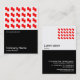 Un diseño de tarjeta de visita medio negro y medio blanco con un motivo abstracto moderno. Información principal de la empresa en la parte delantera con nombre y datos de contacto en la parte posterior con un tema similar.