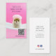Cute and modern business card with QR code for dog groomers. Featuring photo of Chihuahua dog getting a spa treatment with green face mask and wearing pink shower cap. Template gives option to replace the photo with your own but feel free to keep existing image! Model is Instagram famous Chihuahua Sparkle. ©Marisu Valencia