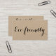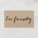 Diseño minimalista y sencillo de tarjetas de visita kraft con un tipo de letra manuscrita en negro. Perfecto para un ambiente favorable / negocios verdes o si vendes productos ecológicos y orgánicos. También es genial para negocios hechos a mano o en línea como etsy. También tiene un mensaje de agradecimiento al cliente al fondo. Puede personalizar el texto de cualquier forma que desee para que sea perfecto para su producto o productos y para sus negocios.