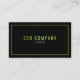 Una moderna tarjeta de ecommerce presenta un fondo negro con un crujiente borde verde y texto en negrita que combina, creando una sorprendente pieza de identidad minimalista para marcas ecológicas o con enfoque verde. La delgada frontera aporta un toque refinado, mientras que la tipografía verde brillante destaca por los detalles de contacto y compañía. El nombre de la ciudad y el texto secundario utilizan el gris para la jerarquía visual y la claridad añadida. Ideal para los negocios de limpieza ecológica o de jardinería, este diseño se puede actualizar para cualquier pequeña empresa o promoción empresarial sostenible y moderna.
