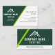 Un moderno diseño de tarjetas de visita ecológica con una paleta de colores verde y gris, ideal para las empresas de techos, los contratistas solares y los profesionales de la construcción sostenible. Este diseño limpio y profesional resalta el nombre de su empresa, los detalles de contacto y los servicios mientras comunica confianza, fiabilidad y responsabilidad ambiental. Ideal para los prospectos, instaladores solares y operaciones de mejora de viviendas centradas en soluciones de energía verde.