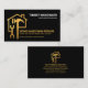 Una cubierta negra se acentúa con un diseño creativo de oro "hogar spanner-hammer". En la esquina superior está tu prestigioso nombre y título de trabajo. Justo debajo de la casa dorada está el nombre de la empresa y los datos de contacto con una opción de subtítulo de eslogan para publicitar sus servicios. Las letras aquí están en oro falso. Al dorso, el logotipo dorado que se puede usar está en la parte superior. A esto le sigue su prestigioso nombre, los detalles de contacto y una opción de slogan para publicitar su negocio. Una gran carta para todos, especialmente para los negocios de construcción y manualidades.