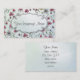 Diseño hermoso de la tarjeta de visita con un estampado de plores delicado con las flores rosadas en un fondo azul claro.