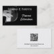 Esta elegante tarjeta de presentación con temas de música en blanco y negro muestra las manos de una persona en un piano de cola con mucho espacio para agregar tu nombre y línea de etiquetas, presupuesto o nombre de la empresa. La parte posterior de la tarjeta incluye un código QR para dirigir a las personas a su sitio web. Fotografía y diseño ©Vann-Horn Creative Photo & Designs.