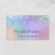 Da una buena impresión con esta tarjeta de visita de moda que presenta goteos falsos purpurinas en un arcoiris de rosa, púrpura, azul y verde y tu nombre en un guión a la moda contra un fondo coadyuvante arcoiris. Perfecto para salones de belleza, maquilladores, estilistas y esteticistas.