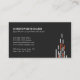 Un sencillo motivo de barras iluminadas de color gris claro y naranja proporciona un gráfico moderno y llamativo sobre la plantilla de tarjeta de visita de este electricista. Se coloca sobre un fondo gris de carbón vegetal oscuro. © 1201AM CREATIVE