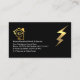 Overleaf, a gold lightning bolt is at the upper right corner. Card details are over on the left with a home bulb circuit logo you can use. This is followed by the business name, contact details and a slogan caption option which you can change.