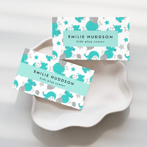 Tarjeta De Visita Elefantes Azules, Centro de Juegos Infantiles, Cen