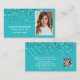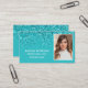 Tarjeta De Visita Elegant Aqua Glitter Photo QR Code