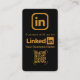 Elevate your professional networking with this sleek black and gold LinkedIn business card. Designed for the modern professional, this card features a prominent LinkedIn logo and a scannable QR code that instantly connects clients to your profile. The reverse side offers a space for your business logo, creating a cohesive and memorable brand presence. Make a lasting impression and simplify how people connect with you by adding this stylish and functional business card to your professional arsenal. It's the perfect way to ensure potential clients and collaborators can easily find and engage with you online.
