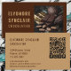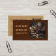 Elegant brown caramel business card for chocolatiers with cacao photo and social media icons. Features QR code, Facebook, Instagram, WhatsApp, Pinterest links. Customize with your name, business details, contact info, and social handles. Perfect for artisan chocolate professionals.