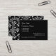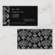 Tarjeta De Visita Elegant Daisy Damask in White on Black Custom