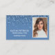 These elegant dusty blue business cards with dusty blue glitter sprinkling down from the top edge would be fabulous for you. The front features your photo, your name, title and business name. The back has your address, phone number, social media information, and QR Code. It's super easy to upload a photo and use the templates. In just a few seconds you can see your luxurious business cards. These are perfect for a nail technician, hair stylist, makeup artist, esthetician, beauty salon, skin care specialist, or lash and brow specialist.