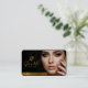 Make a stunning first impression with this elegant and modern business card designed specifically for nail art salons. Featuring a luxurious black marble background contrasted with sparkling gold glitter accents, this card exudes sophistication. The beautiful golden "Glow Me" script logo and a captivating image of a woman with golden nails and makeup instantly convey the artistry and glamour of your salon. The back of the card provides ample space for your contact information, including phone, email, and social media handle, ensuring clients can easily reach you. Perfect for nail technicians, nail artists, and beauty entrepreneurs looking for a chic and memorable way to promote their business. This card is fully customizable to suit your brand.