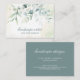 Elegant large business card featuring eucalyptus leaves and greenery with a hint of blue and speckles of faux gold glitter at the top, over a pastel watercolor wash. The backside has your contact information over a matching shade of soft blue green. This simple, rustic design is great for a gardener or landscape professional.