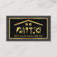 Design features a black rectangular cover that is encapsulated by a gold frame with an outer dark grey layer. Underneath the gold rooftop with windows is an array of gold handyman tools. The business name (which you can change) is near the base of the card.