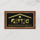 Design features a black rectangular cover that is encapsulated by a gold frame with an outer brown timber layer. Underneath the gold rooftop is an array of gold handyman tools with the business name near the base of the card.
