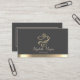 Professional fashion stylist business card featuring a beautiful gold glitter cupcake and an elegant gold stripe on gray backgrounds. Add your name and contact details to make a lasting first impression.