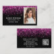 Tarjeta De Visita Elegant Hot Pink Glitter Photo QR Code