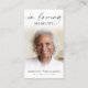 Keep the memory of a loved one close with this custom personalized prayer card featuring one treasured photo, the sentiment IN LOVING MEMORY, name and dates on the front and an editable prayer accented with a simple cross on the back. With its simple yet elegant black and white design and elegant script typography, it makes a meaningful keepsake to share at a funeral, memorial service or Celebration of Life and offers comfort and a lasting tribute for family and friends. Its small and portable size of 3.5x2" (wallet-sized) makes it convenient for loved ones to carry it with them as a reminder of your loved one’s life and spirit. Personalization makes each card unique.