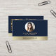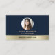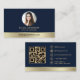Tarjeta De Visita Elegant Navy Blue Gold Logo QR Code Photo