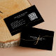 Tarjeta De Visita Elegant Plain Black Gold Script Monogram QR Code