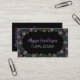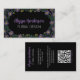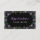 Features a hand drawn floral border with purple and white typography for business name and profession on the front. White typography for address, phone number, email, website and socials with QR code on the back all on a black background. Perfect for floral designers.