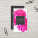 Un bonito ilustracion acuarela de flores de piedra rosa brillante da una gran impresión a esta elegante plantilla de tarjetas de visita. La caja gris oscura crea una pantalla moderna para tu nombre o nombre de negocio. Ilustracion y diseño de acuarela © 1201AM CREATIVE