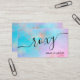 Hermoso y elegante diseño de tarjetas de visita de artista de maquillaje que incluye letras de escritura manuscritas modernas, oro falso rosa y textura colorida de color.
