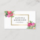 Los ramos de arte florido rosa brillante se encuentran en las esquinas de esta moda de tarjetas de visita. Enmarcado con una falsa caja metálica de oro para mantener tu nombre o nombre comercial. Este diseño elegante es llamativo y bonito. Ideal para planificadores de eventos, estilistas, diseñadores de interiores, decoradores y más. Arte y diseño © 1201AM CREATIVE