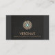 Profesional y elegante - diseño sencillo. Imagen digital de fondo texturado de lino negro. Imagen digital del motivo del loto inspirado en el Relieve metalizado dorado mandala. Centro del círculo azul turquesa. Diseño original de Maura Reed.