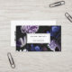 Elegante diseño de tarjetas de visita floral, con rosas malvas de lavanda pálida y peonías azules índigo profundas sobre un fondo oscuro y dramático. Añada su nombre o nombre de negocio con letras modernas, colocadas sobre un elemento blanco en el centro. Personalice el lado inverso con su información de contacto, junto con un código QR de personalizable.
