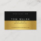Tarjeta de visita personalizada elegante con monograma dorado negro 3.5 x 2.0
